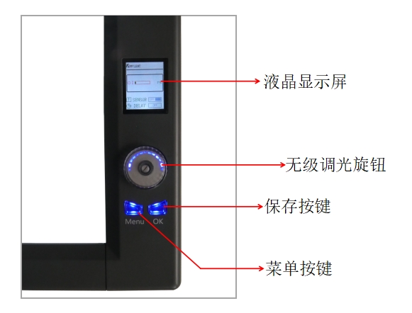 2)打開電源開關,在默認時旋鈕左旋為原有亮度基礎上所有聯(lián)的燈板同時降低亮度,右旋為原有亮度基礎上所有聯(lián)的燈板同時增加亮度。調(diào)整單聯(lián)亮度:按壓旋鈕選擇需要調(diào)整亮度的聯(lián)(被選中的聯(lián)可以通過液晶顯示器看到),再旋轉(zhuǎn)旋鈕即可調(diào)整亮度。